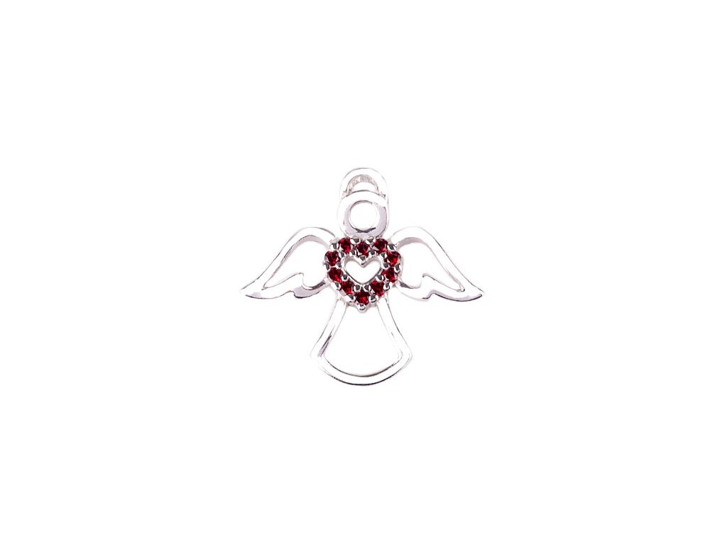 Tento elegantní přívěsek je vyroben ze stříbra (Ag 925/1000) s povrchovou úpravou rhodiováním. Zdoben je českými granáty. Přívěsek má motiv anděl o velikosti 16x17 mm.
