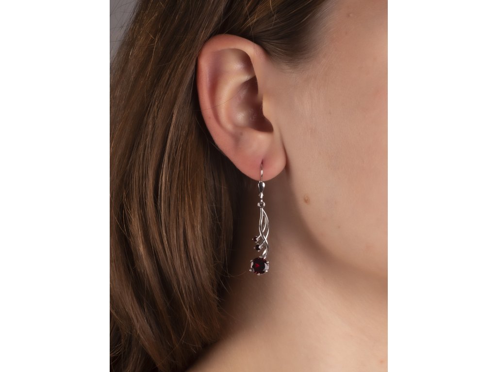 Tyto dámské náušnice jsou vyrobeny ze stříbra (Ag 925/1000) s povrchovou úpravou rhodiováním a se zapínáním na klapku. Zdobeny jsou drobnými přírodními granáty. Náušnice mají motiv vlnka o velikosti 8x31 mm.