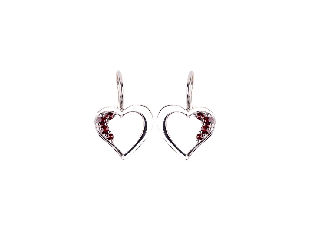 stříbrné náušnice s českým granátem - srdce (6371351)
