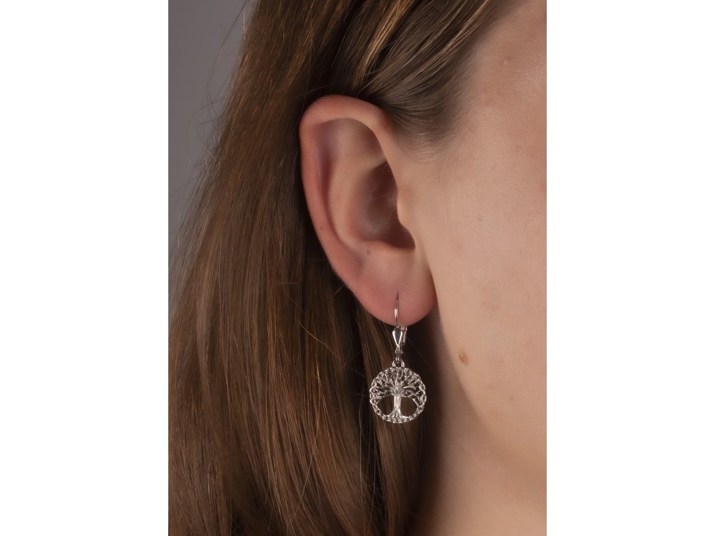 Tyto dámské náušnice jsou vyrobeny ze stříbra (Ag 925/1000) s povrchovou úpravou rhodiováním a se zapínáním na klapku. Náušnice mají motiv strom života o velikosti 15x15 mm.